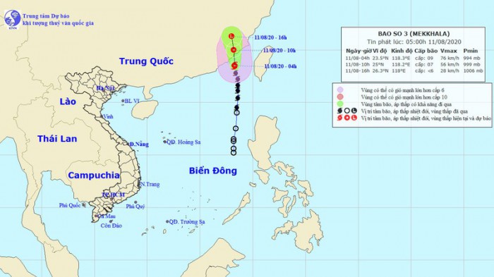Dự báo trong 6 giờ tới, bão di chuyển theo hướng Bắc, đi vào đất liền tỉnh Phúc Kiến (Trung Quốc) và suy yếu thành áp thấp nhiệt đới. Theo Trung tâm dự báo khí tượng thủy văn Quốc gia, lúc 4 giờ ngày 11/8, vị trí tâm bão 3 ở vào […]