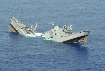 Chiếc tàu chiến cũ của Mỹ trúng ngư lôi từ tàu ngầm Australia và chìm xuống biển, khi tham gia cuộc tập trận chung hải quân lớn nhất thế giới đang diễn ra ở Thái Bình Dương.